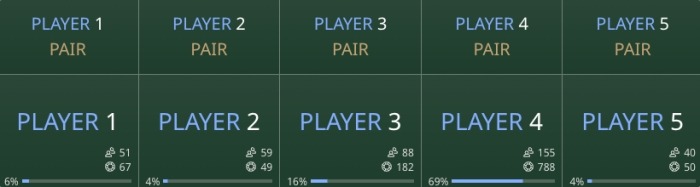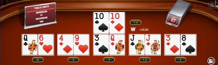 Player Pair 1-5This is a bet on whether players in positions 1 through 5 will have a “pair,” such as 7–7 or K–K, without necessarily beating the dealer.2:1