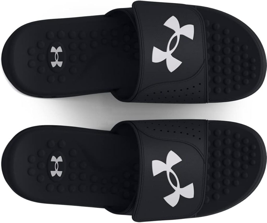 - UA Men’s ARMR Slides carry a more substantial midsole and reinforced strap for athletes who want structured daily recovery that extends beyond the locker room. The fit stays in place during extended post-training walks, whether that means crossing a parking lot, moving through an airport before a tournament, or handling the commute after a long training block.